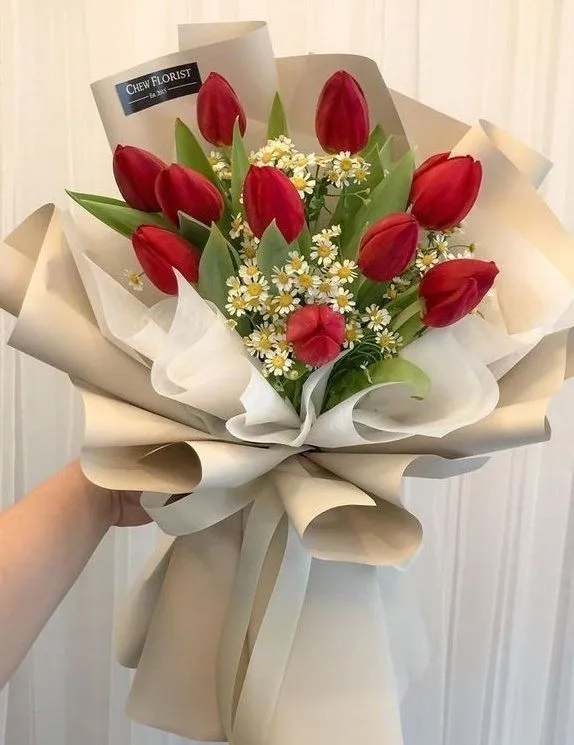 Xu hướng bó hoa tulip đỏ 2026