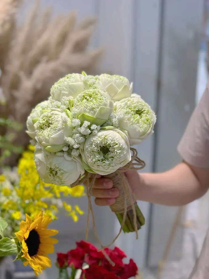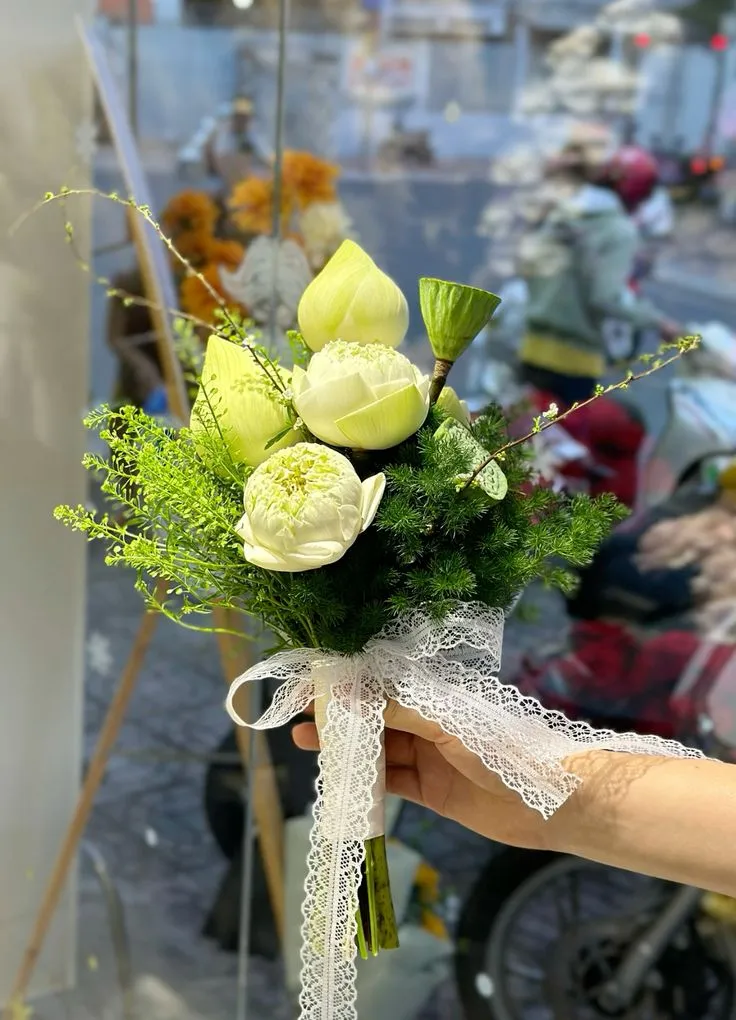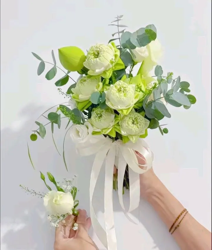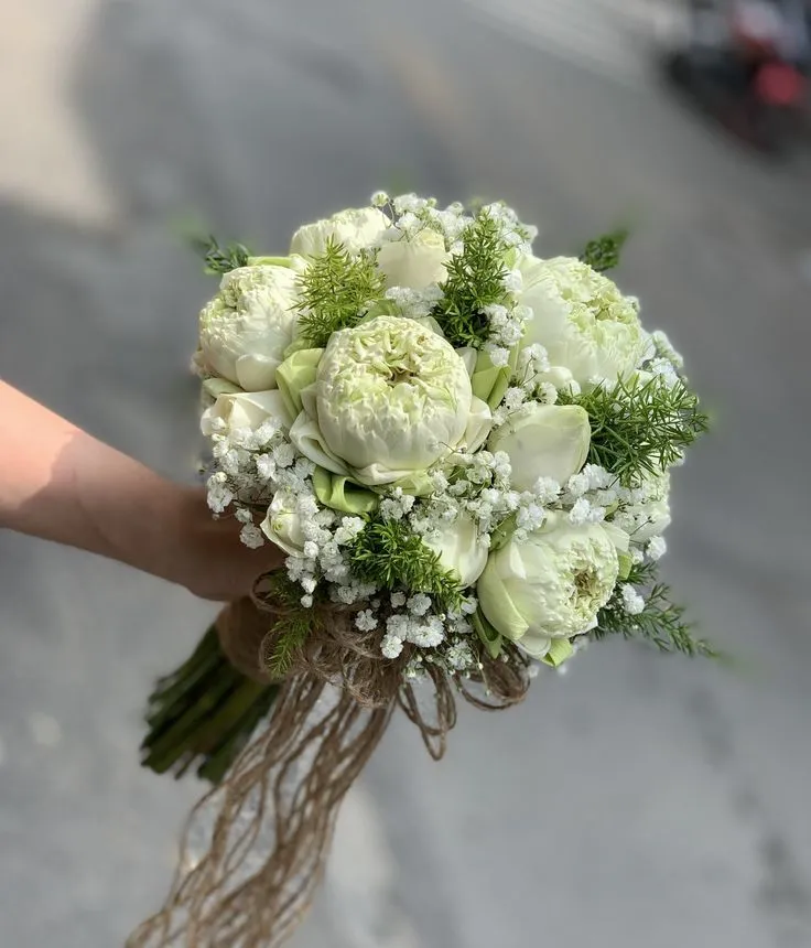 Hoa cưới sen trắng không chỉ mang vẻ đẹp thanh tao mà còn chứa đựng ý nghĩa sâu sắc về tình yêu, sự thủy chung và hạnh phúc lâu dài. Với vẻ đẹp truyền thống nhưng vẫn tinh tế, bó hoa sen cưới luôn là lựa chọn được nhiều cô dâu Việt yêu thích.