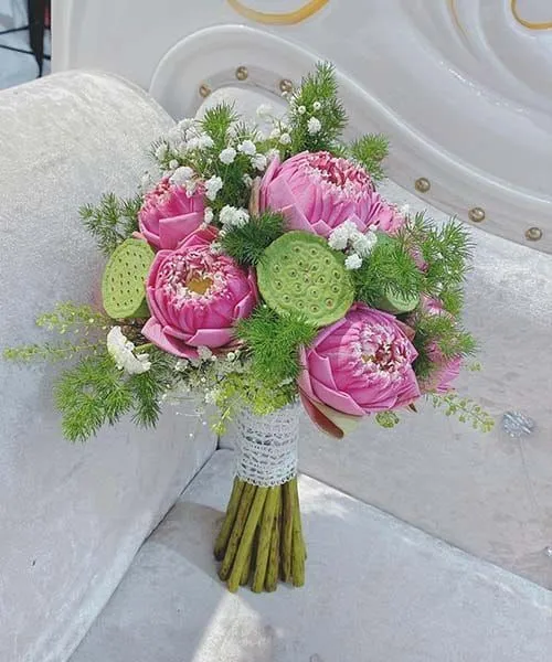 Mẫu bó hoa sen cưới cầm tay cô dâu ý nghĩa giá rẻ nhất