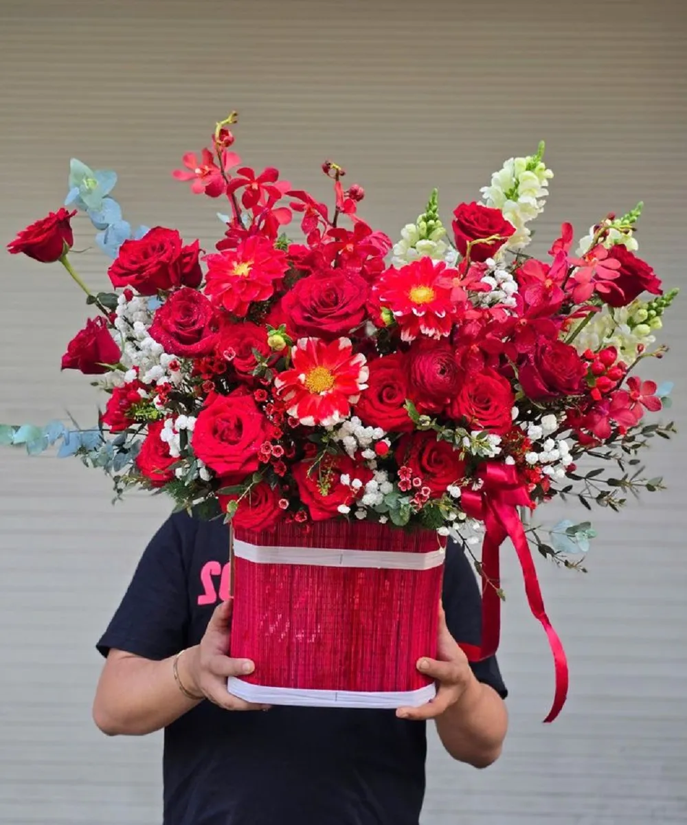 Giỏ hoa hồng phối màu sang trọng