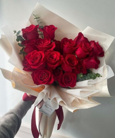 Bó hoa hồng trái tim tone màu đỏ đẹp